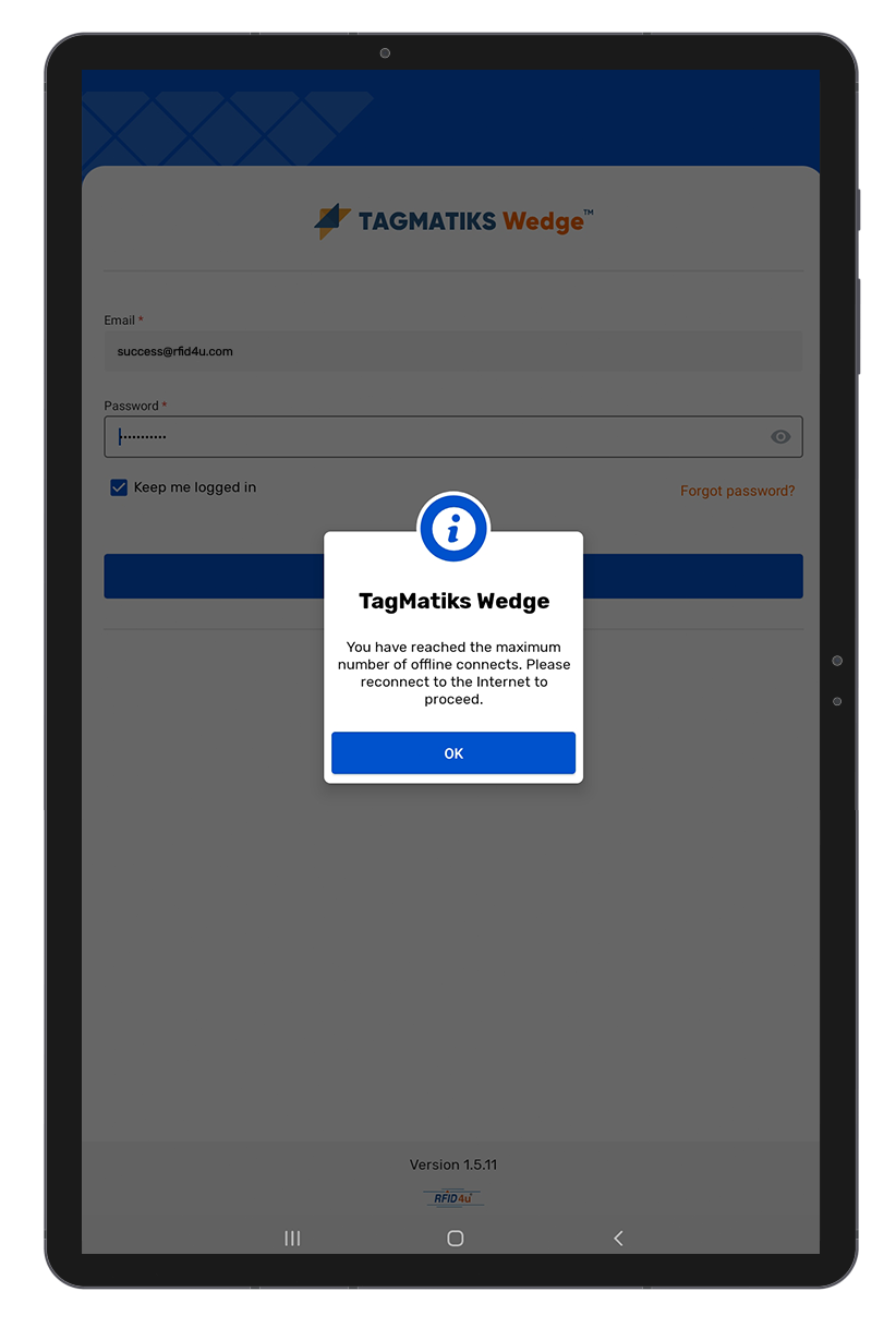 The TagMatiks Wedge application allows users to log in without an internet connection up to five times.