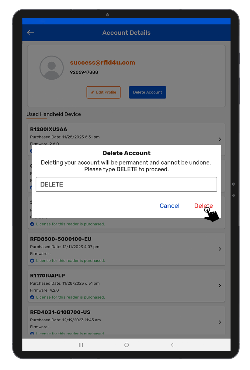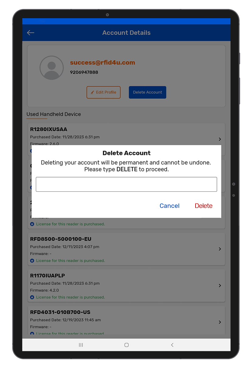 Once the verification process is complete, users will receive confirmation that their account deletion request has been initiated. RFID4U will then proceed to permanently remove the user's data from our systems.