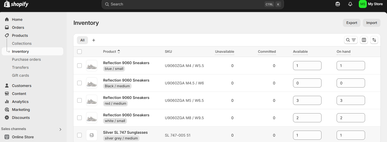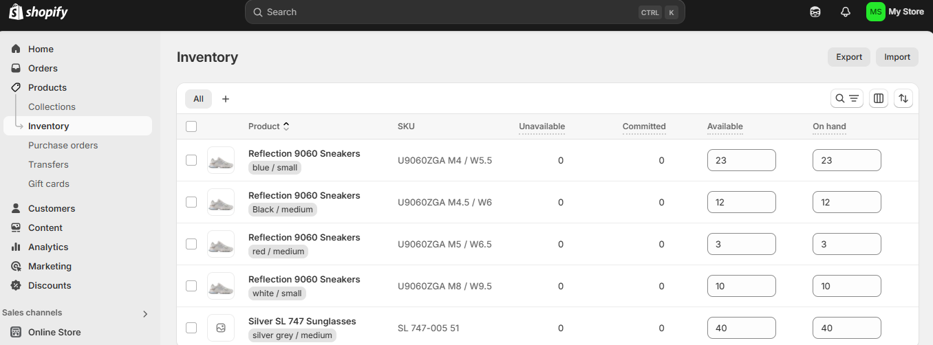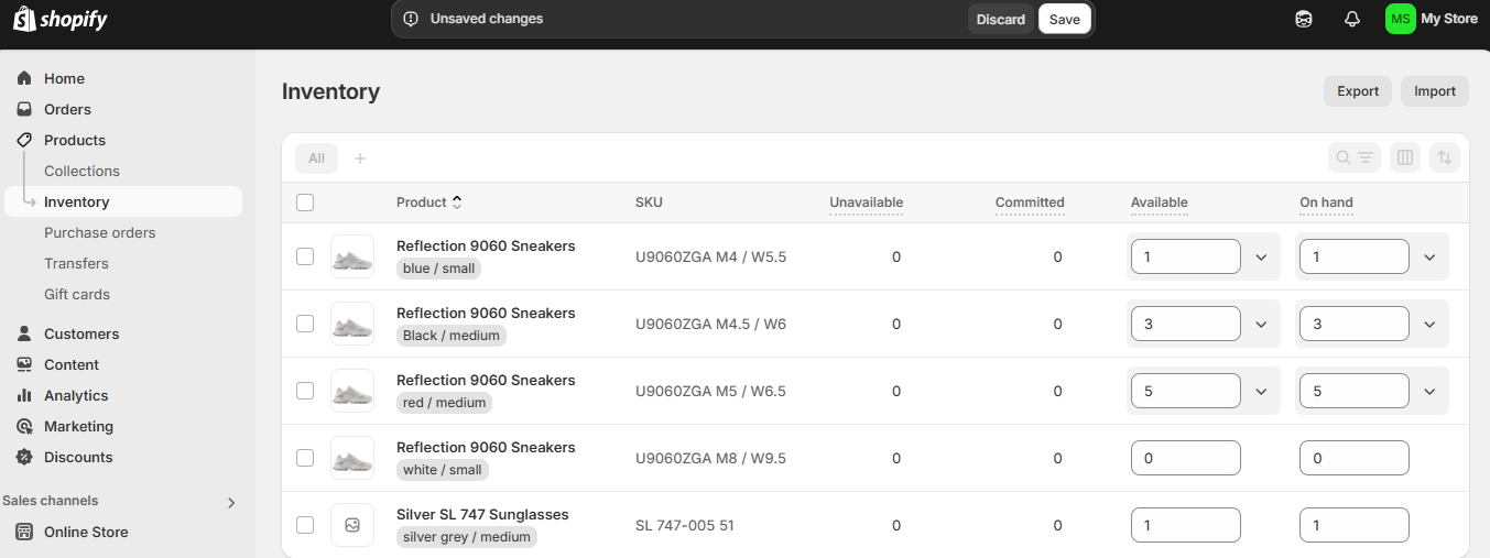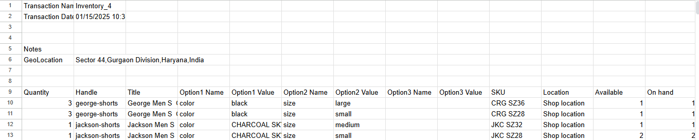 3. Copy the values from the Quantity column and paste them into the Available and On Hand columns. Then delete the Quantity column.