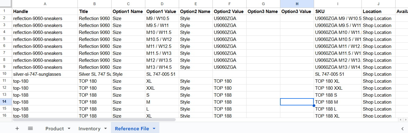 Note: RFID4U provides a template to users by email. This template contains three sheets: Product Export, Inventory Export, and Reference File.