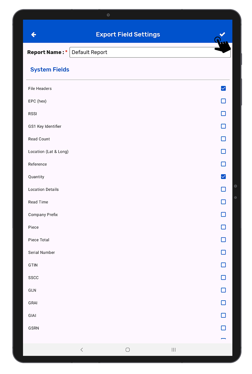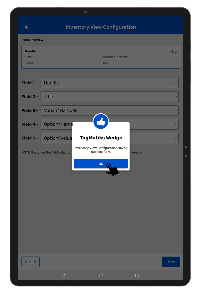 Step 11 :- Select the fields you want to display on the TagMatiks Wedge Application after the inventory.