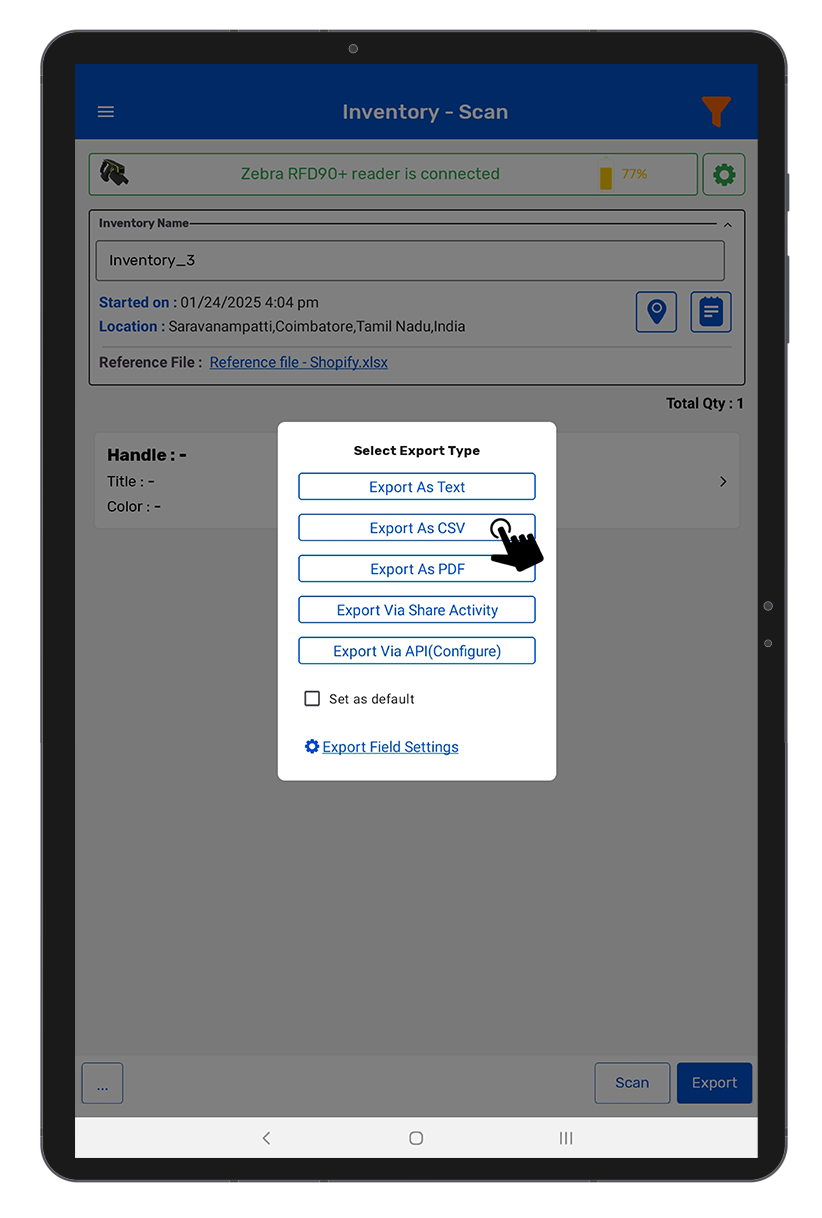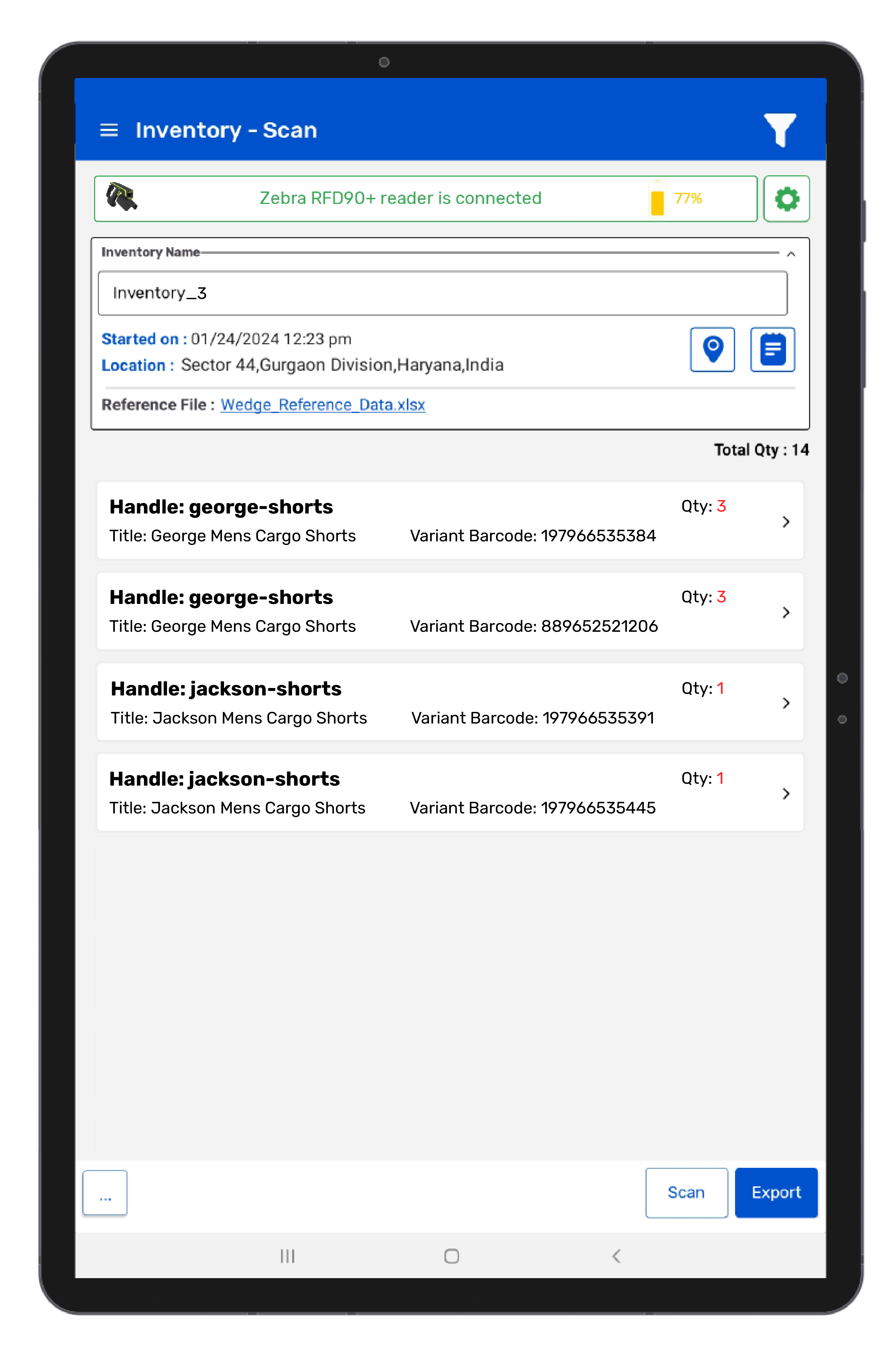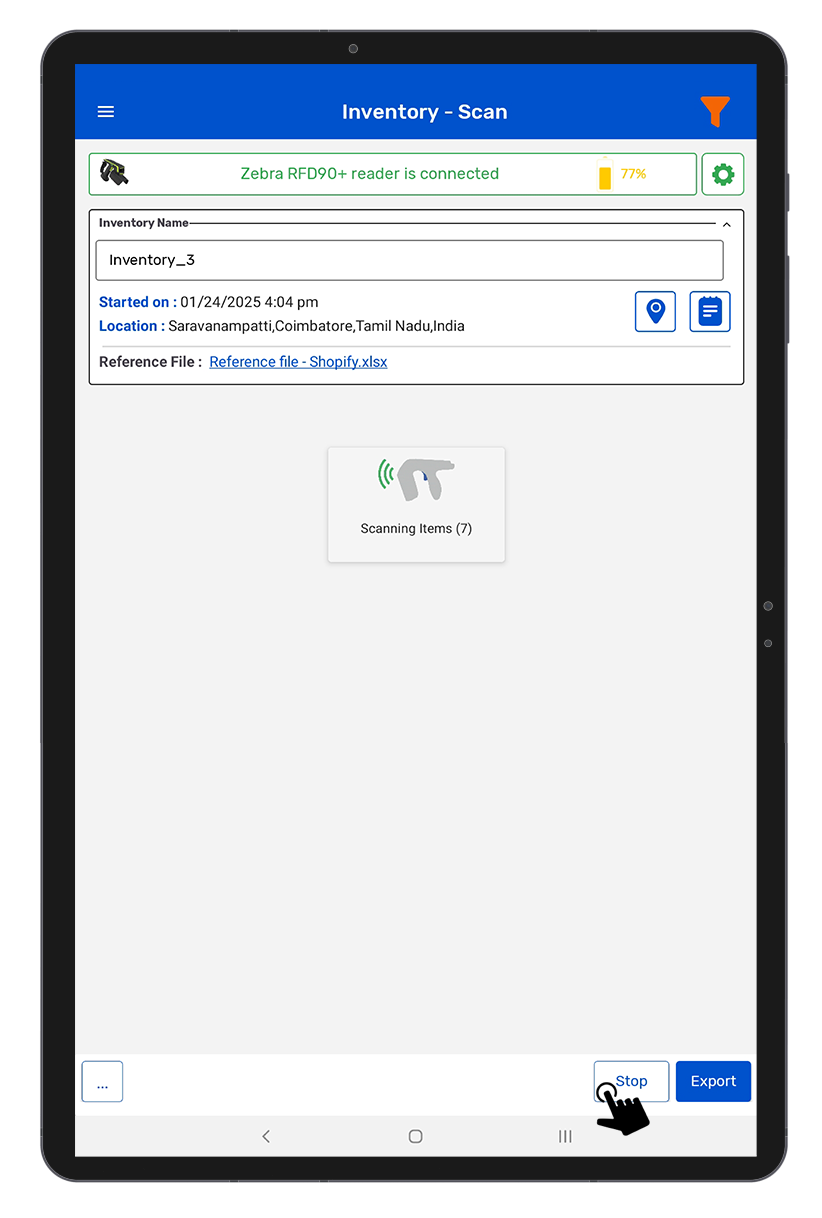 Step 3 :- Click on the "Scan" soft button or press the hard trigger to take the inventory.
