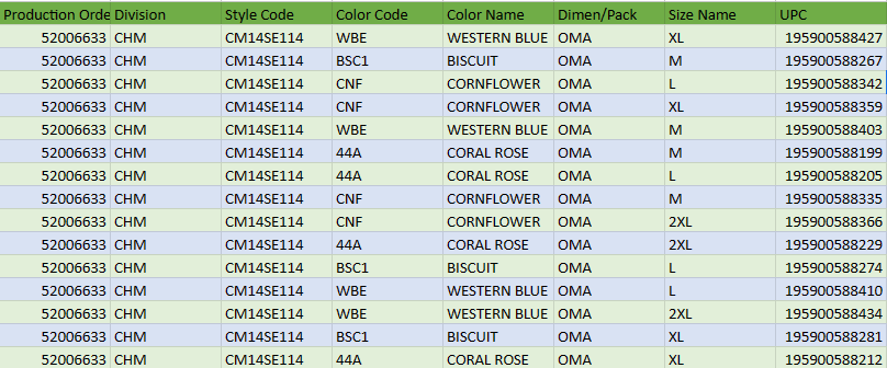 For creating a new Reference file, open an excel sheet and make entries in it. Please refer below table created in an excel sheet, incorporating UPC details as sample.