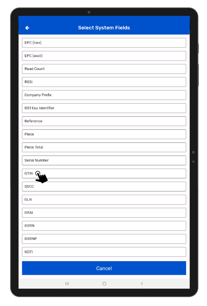 3. You’ll see a list of default fields.You must select at least one field. In this example, “GTIN” is selected. As shown in Fig 1.1.