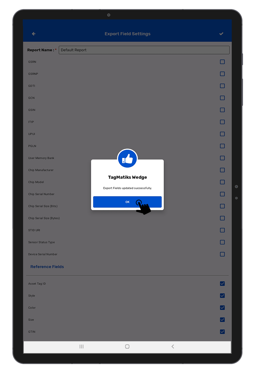 G. Setting up “Export Fields Configuration” in TagMatiks Wedge Application
