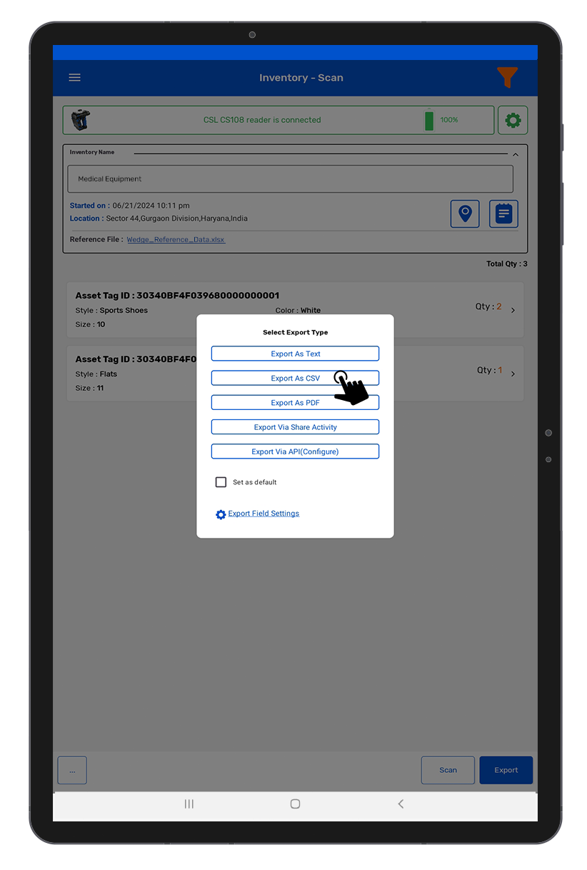 To configure the export Inventory file settings, in TagMatiks Wedge application; please follow below steps:
