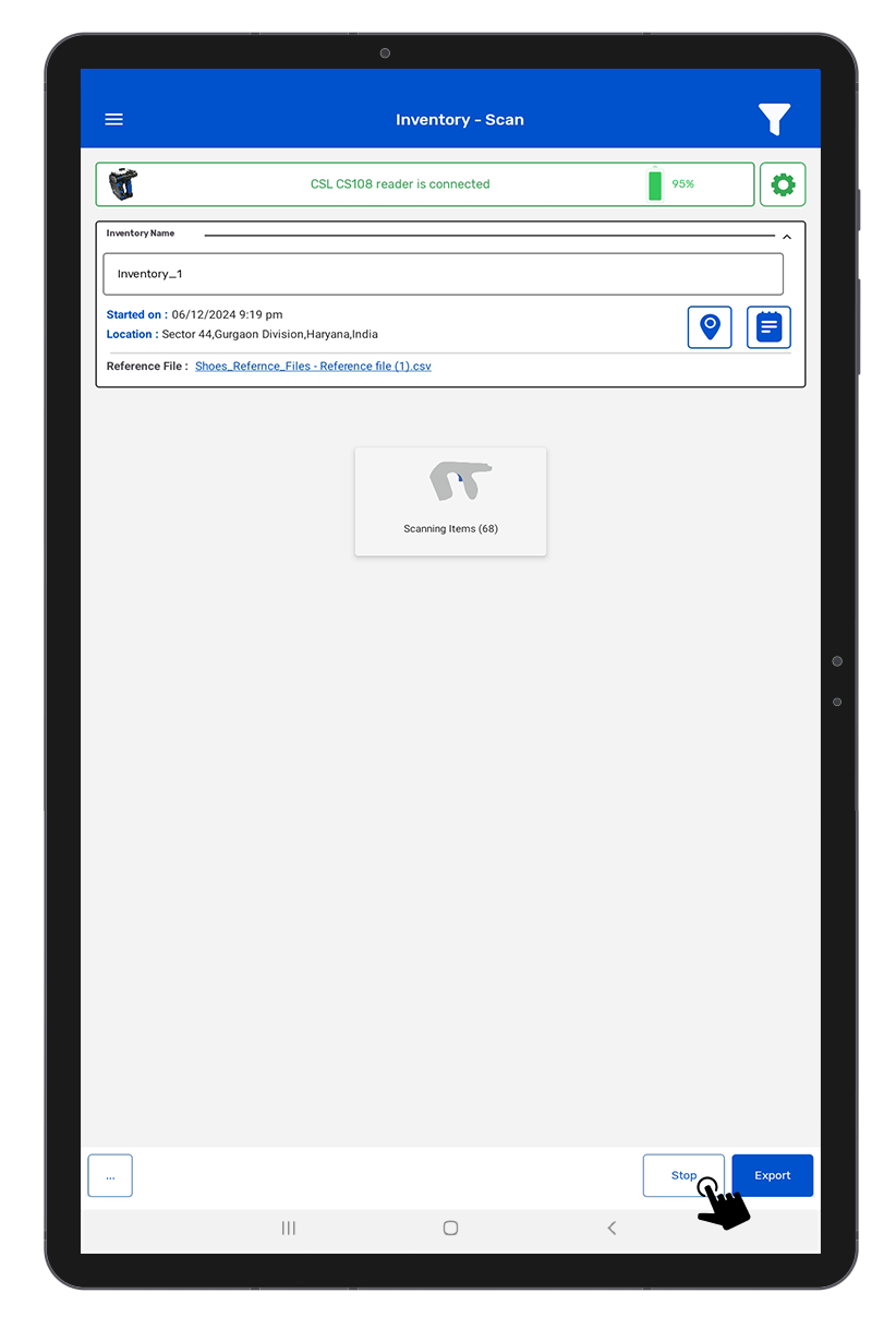3. Then create a new Inventory and name the Inventory list. Like here it is created in the name of “ Shoes Reference File”. Click on Scan Button to scan the RFID Tags. As shown in Fig 2.6.