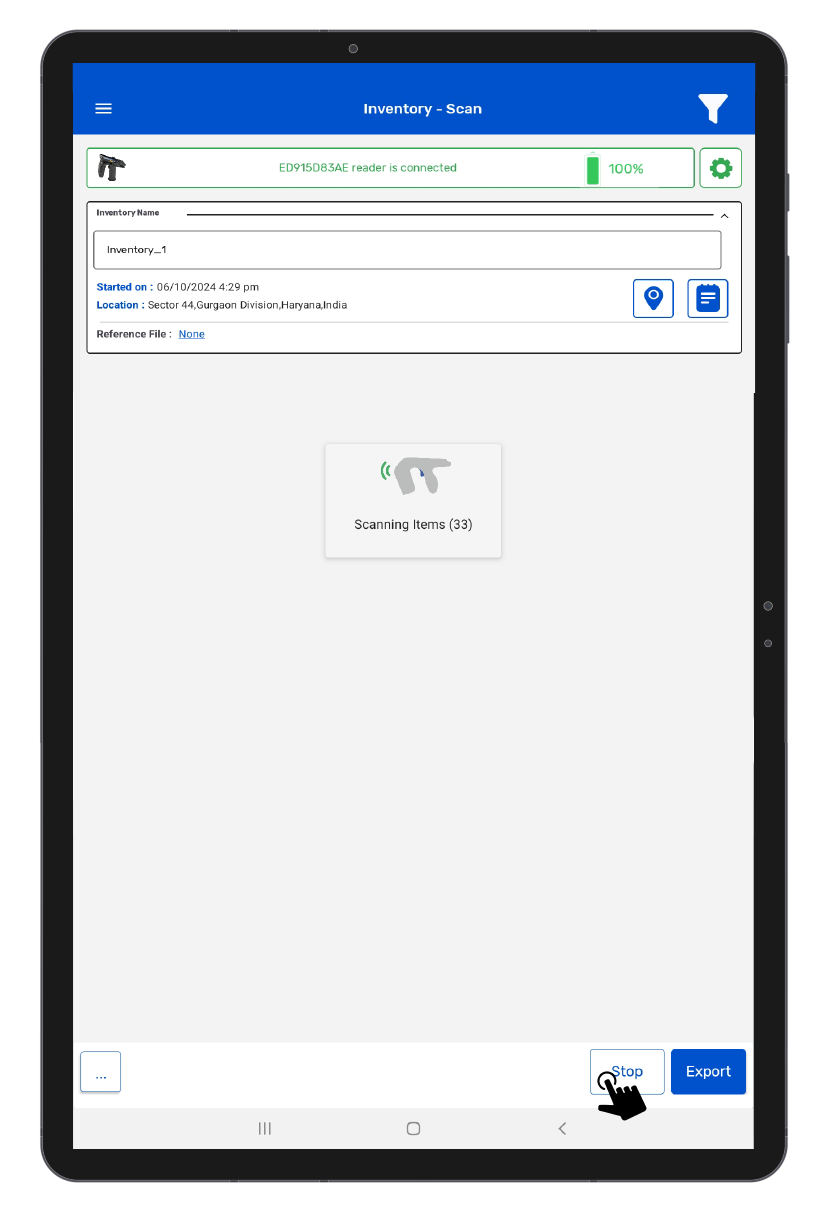 7. Once you Click on the “Stop” button (on the right bottom of the application), the reader will stop reading the tags.