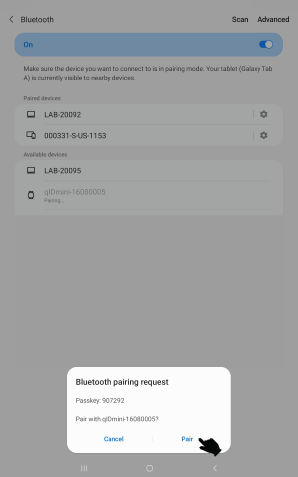 Turn on the Bluetooth of the device and select the qIDmini-XXXXXXXX followed by the ID of the device from the available device list as shown in the below image.