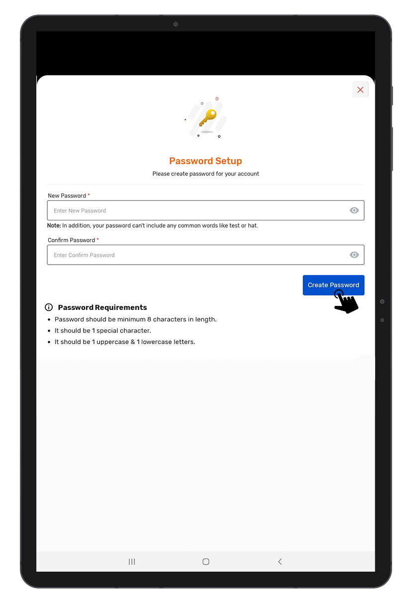 • Password should be a minimum 8 characters in length.