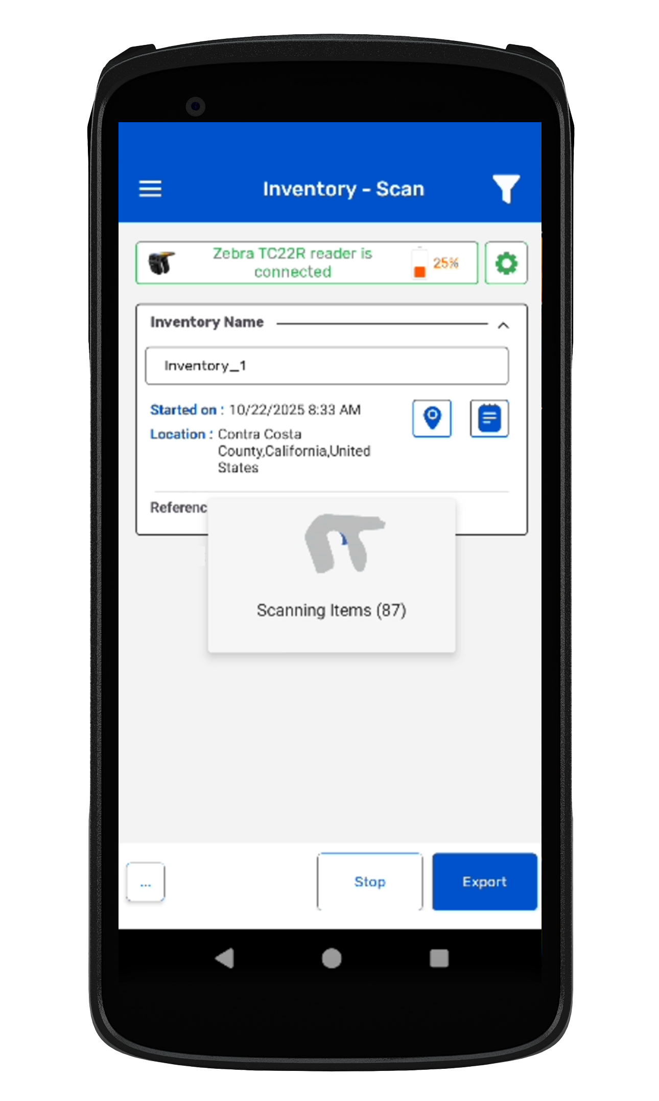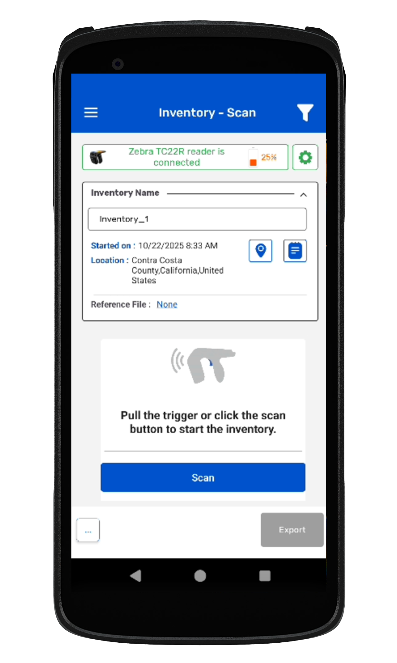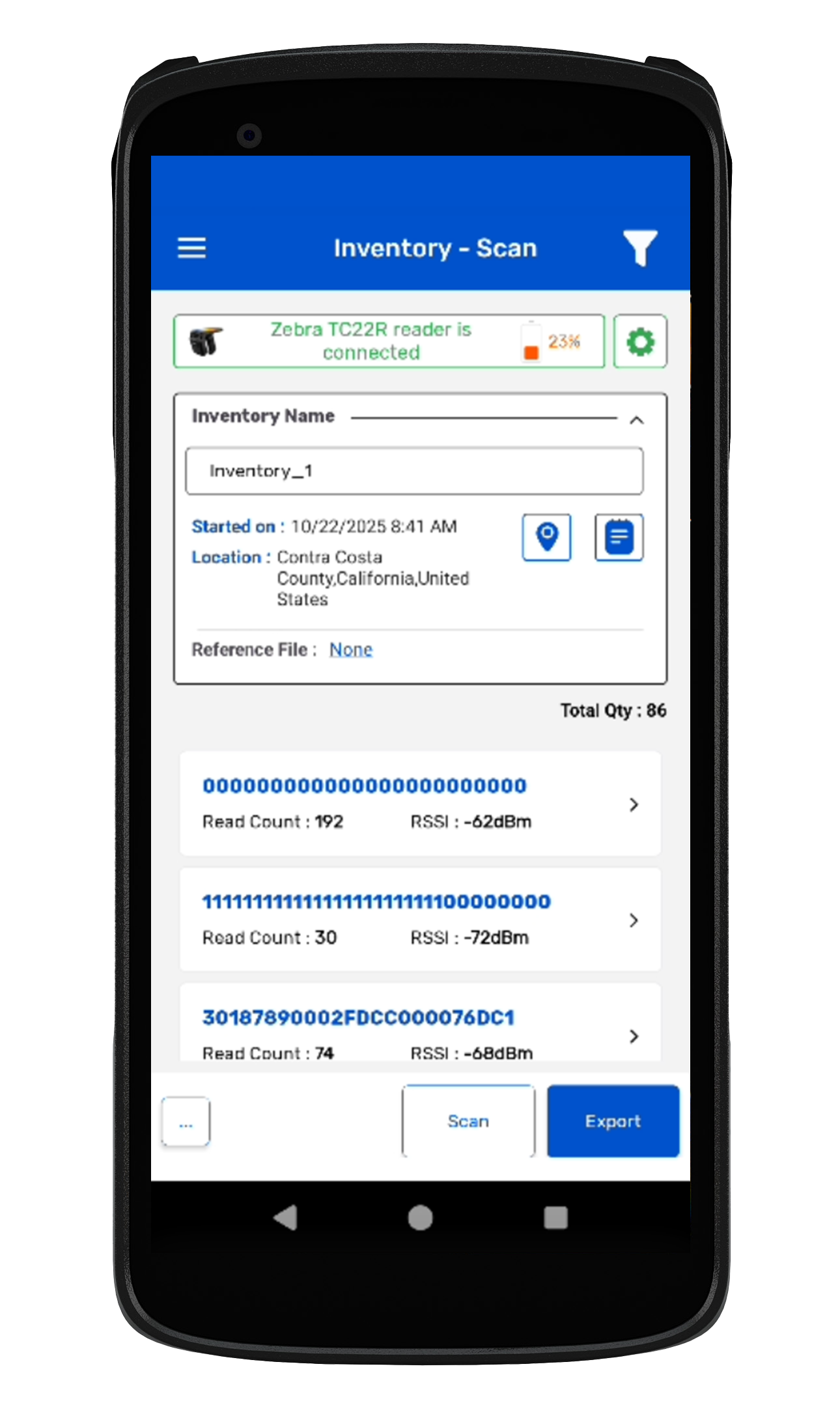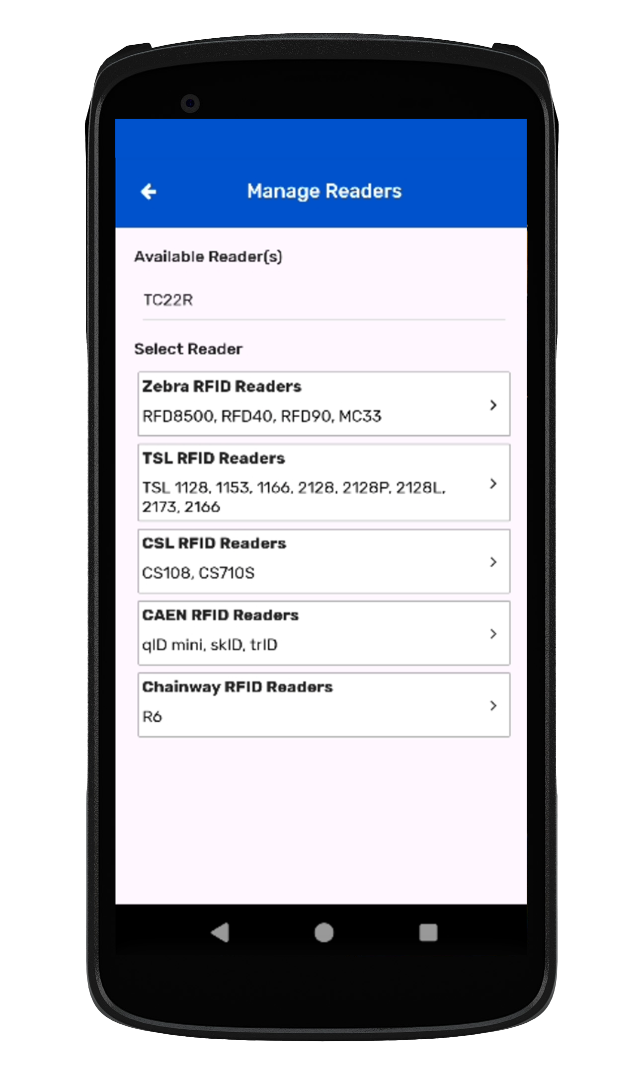 2. Zebra TC22R Reader is automatically connected to the application once we login
