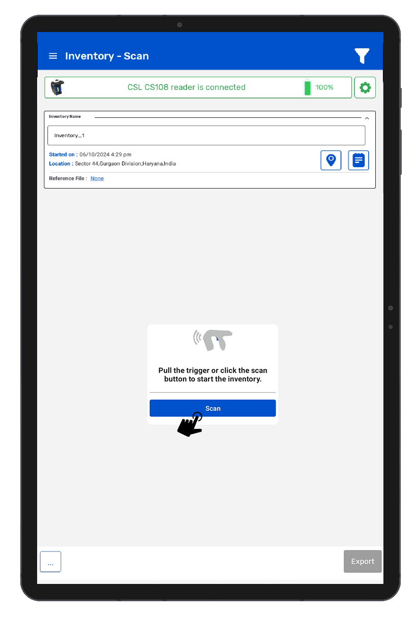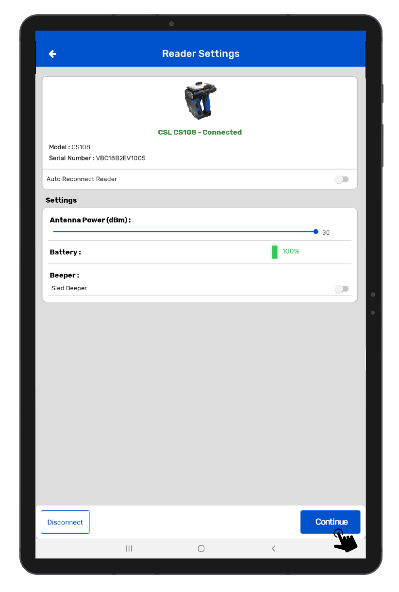 NOTE: Make sure the Android’s Bluetooth must be on and near to the CS108 reader.